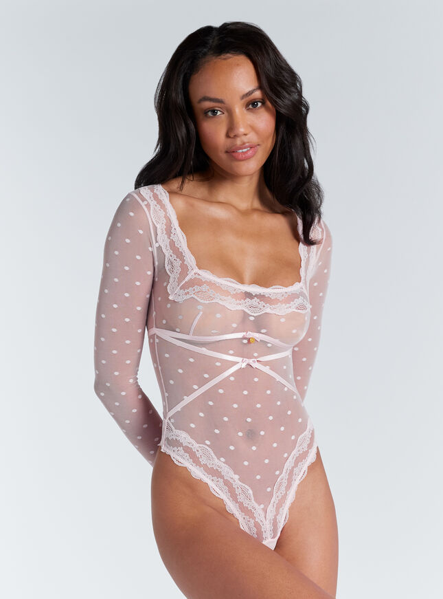 Faye spot mesh bodysuit - Light Pink