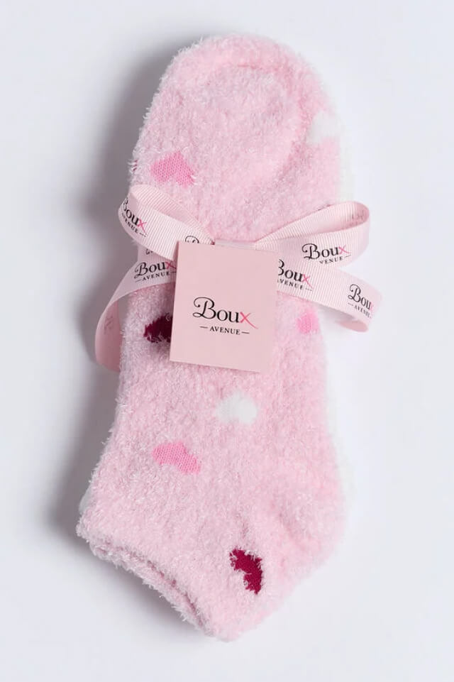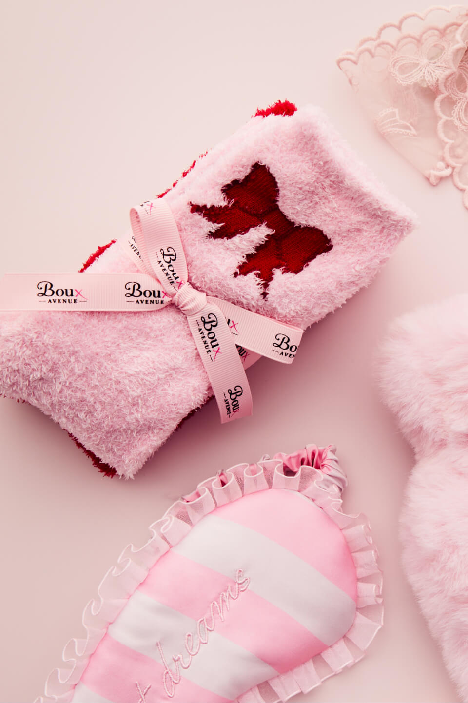 2 Pack Heart Fluffy Trainer Socks - they come beautifully presented with a Boux Avenue branded ribbon tying the socks together. The luxuriously soft fluffy fabric will feel heavenly to put on that she will never want to take them off.