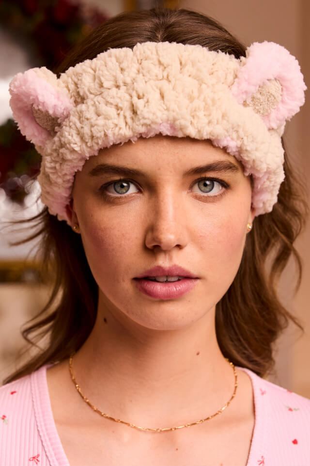 Teddy Bear Beauty Headband - this adorable headband comes in a teddy bear fleece material with 3D teddy bear detailing - perfect for your friend to wear whilst doing her daily skincare routine.