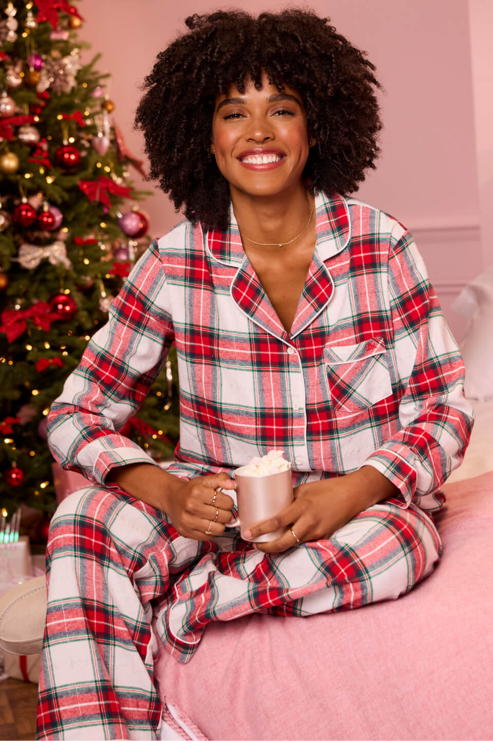 Ivory Check Cotton Pyjamas in a Bag - a classic festive plaid design that is timeless, which your friend will be able to wear for years to come.