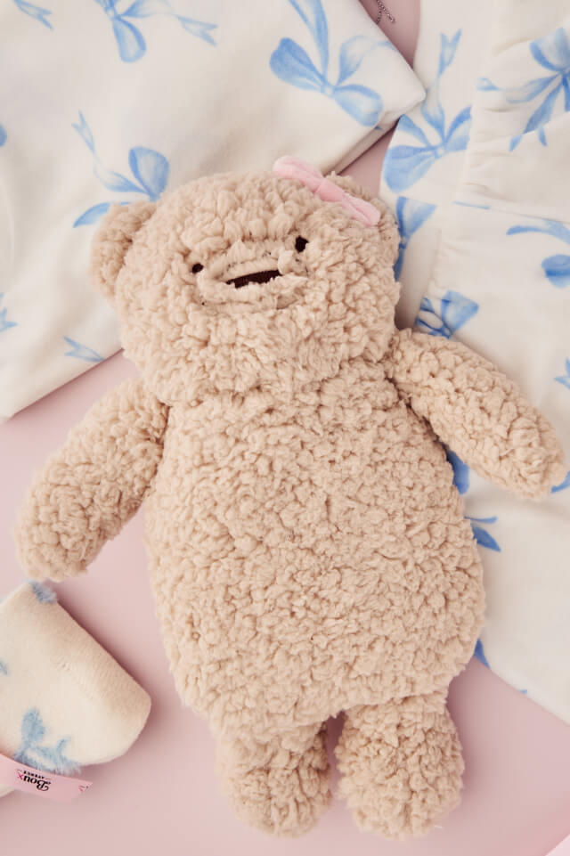 Teddy Bear Hot Water Bottle - Offering extra snuggles and cosiness on the sofa. This adorable teddy bear hot water bottle comes in a huggable shape, made with super soft teddy fleece material.