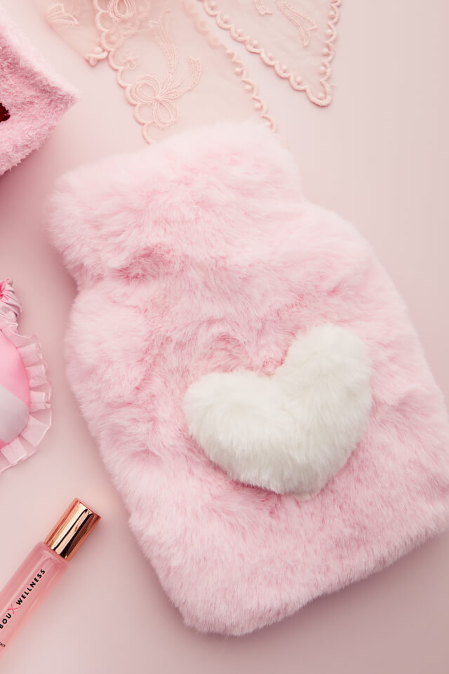 Plush Heart Hot Water Bottle - for the friend who is always cold, this super soft fluffy pink hot water features a 3D cream plush heart to show your love to your BFF.