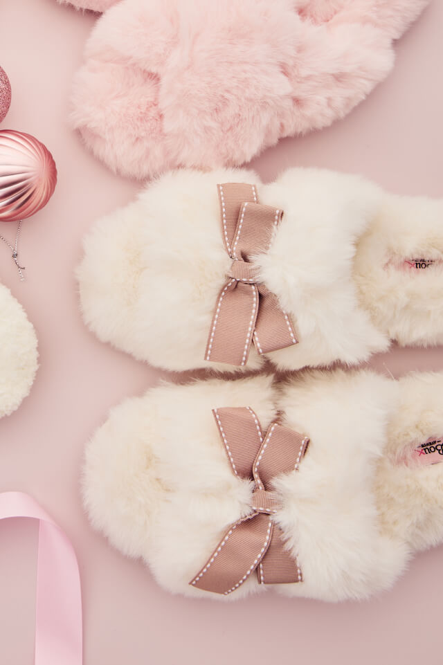 Bow Slider Slippers - in a cute pink these super soft slippers will feel luxurious for your friend to wear, whilst designed with a light pink ribbon bow.
