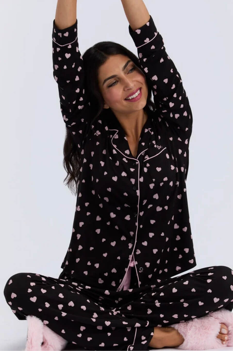 Heart Modal Pyjama Set - in a classic black adorned with cute pink hearts this is a nightwear set that she will love. Whilst the relaxed fit provides the comfort that we all desire.