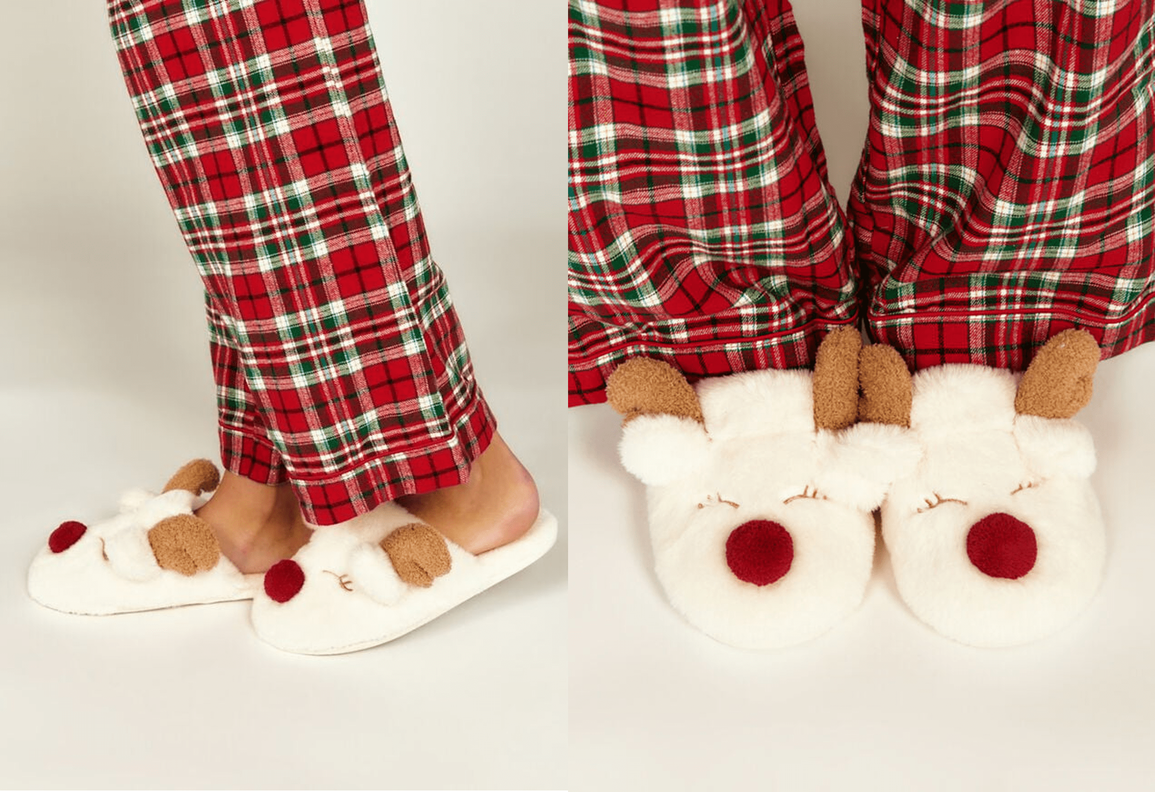 For toasty toes at home, there’s Reindeer mule slippers for novelty joy. Fluffy boot slippers (in pink or white) are a fetching snowboot-inspired way to beat the freeze. And Chenille sparkle cosy slipper socks combine non-slip practicality and sparkly love-ability.