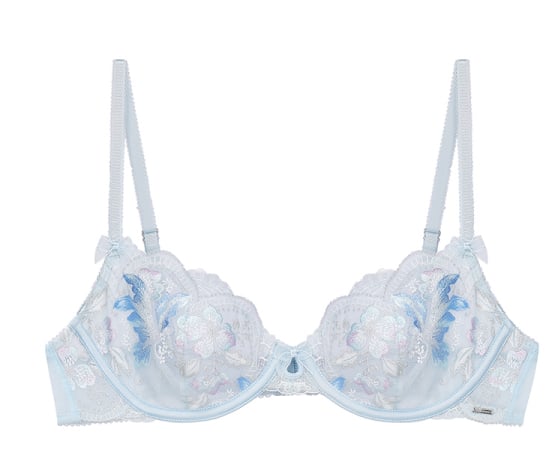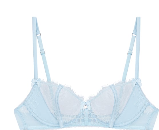 The Catalina Balconette Lingerie Set in light blue offers a playful yet elegant vibe, perfect for pairing with flowy skirts or letting it peek out from beneath a sheer dress for a flirtatious touch.